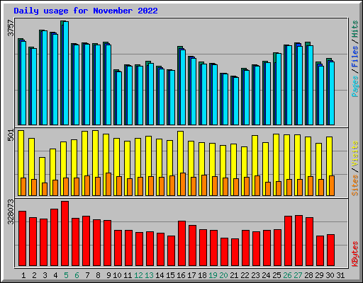 | 日 | Hits | Files | Pages | Visits | Sites | KBytes | ||||||